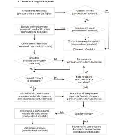 Procedura utilizată de comisie/consultant extern/persoana desemnată (conform opțiunii alese) privind cercetarea disciplinară prealabilă împreună cu formulare și diagrama de proces, anexă la regulamentul intern
